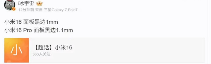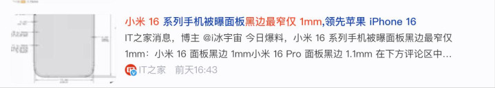 今天的料我先降点温:小米16的“1mm黑边”目前还停留在圈内消息,官方一字未发;